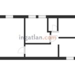 Raumaufteilung: geräumiges Wohnzimmer, ein Schlafzimmer (leicht in zwei kleinere Zimmer teilbar), stilvolles Badezimmer, Küche und Flur.